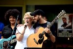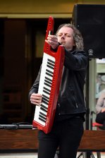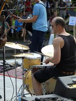 Christian Meringolo und seine Band spielten einfach weiter, obwohl der Himmel die Schleusen geöffnet hatte... trotz Regen sind alle geblieben!