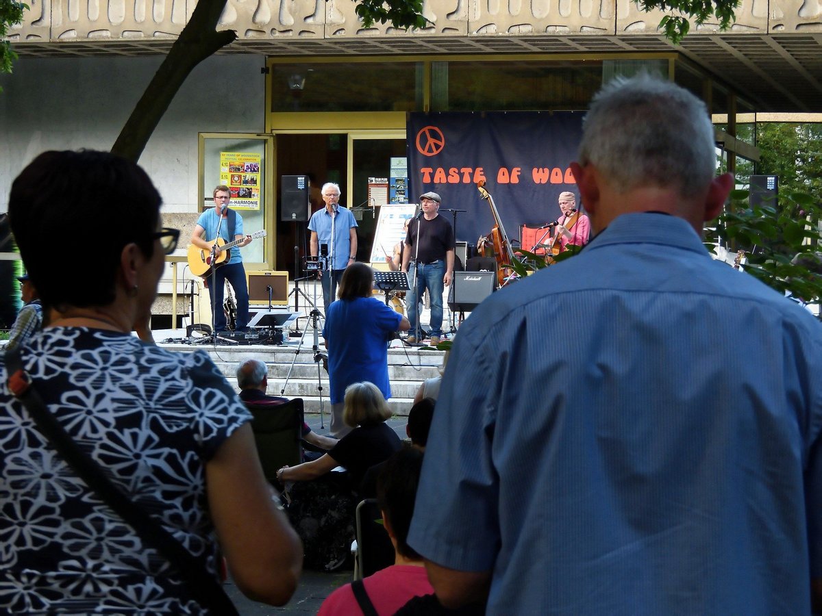 Die Bad Godesberger Band "The Taste of Woodwock" brachte das Hippifeeling bei bestem Wetter in den Stadtpark.